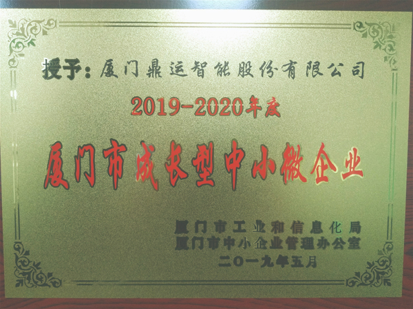 廈門(mén)鼎運(yùn)智能被認(rèn)定為“2019-2020年度廈門(mén)市成長(zhǎng)型中小微企業(yè)”,并將列入成長(zhǎng)型中小企業(yè)運(yùn)行監(jiān)測(cè)樣本。